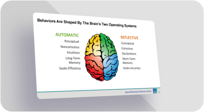 Behaviors Are Shaped By The Brain’s Two Operating Systems AUTOMATIC REFLECTIVE Perceptual Conceptual Nonconscious Conscious Intuitions Declarations Long-Term Short-Term Memory Memory Seeks Efficiency Seeks Accuracy Ipsos Behavioral Science Center 5