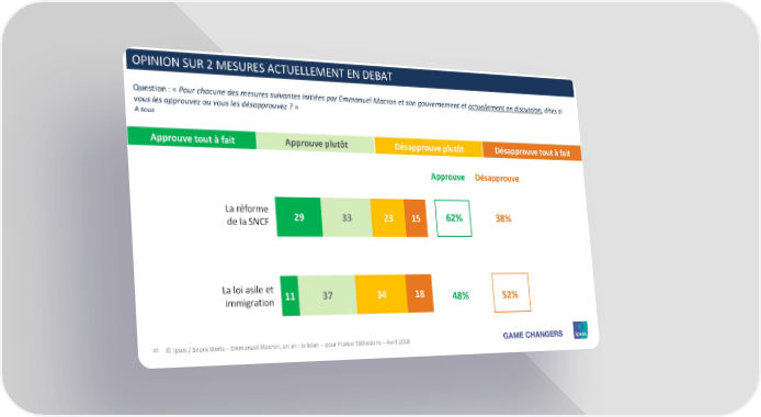 OPINION SUR 2 MESURES ACTUELLEMENT EN DEBAT Question : « Pour chacune des mesures suivantes initiées par Emmanuel Macron et son gouvernement et actuellement en discussion, dites si vous les approuvez ou vous les désapprouvez ? » A tous Approuve tout à fait Approuve plutôt Désapprouve plutôt Désapprouve tout à fait Approuve Désapprouve La réforme 29 33 23 15 62% 38% de la SNCF La loi asile et 11 37 34 18 48% 52% immigration 10 © Ipsos / Sopra Steria – Emmanuel Macron, un an : le bilan – pour France Télévisions – Avril 2018
