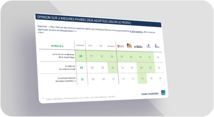 OPINION SUR 3 MESURESPHARES DÉJÀ ADOPTEES (SELON LE PROFIL) Question : « Pour chacune des mesures suivantes initiées par Emmanuel Macron et son gouvernement et déjà adoptées, dites si vous les approuvez ou vous les désapprouvez ? » A tous APPROUVE% Ensemble CSP + CSP - Retraités La loi sur la moralisation 68 77 52 78 70 82 93 72 45 de la vie politique La réforme 43 49 26 59 12 40 92 55 31 du code du travail Les mesures fiscales 31 38 30 25 17 27 74 39 19 dans leur ensemble (..) 9 © Ipsos / Sopra Steria – Emmanuel Macron, un an : le bilan – pour France Télévisions – Avril 2018