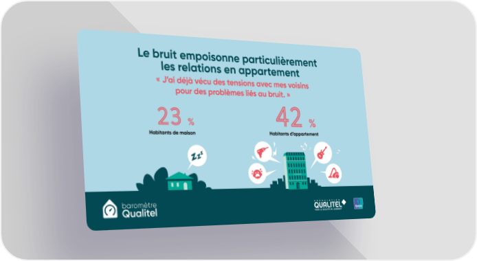 Le bruit empoisonne particulièrement les relations en appartement « J’ai déjà vécu des tensions avec mes voisins pour des problèmes liés au bruit. » 23 % 42 % Habitants de maison Habitants d’appartement