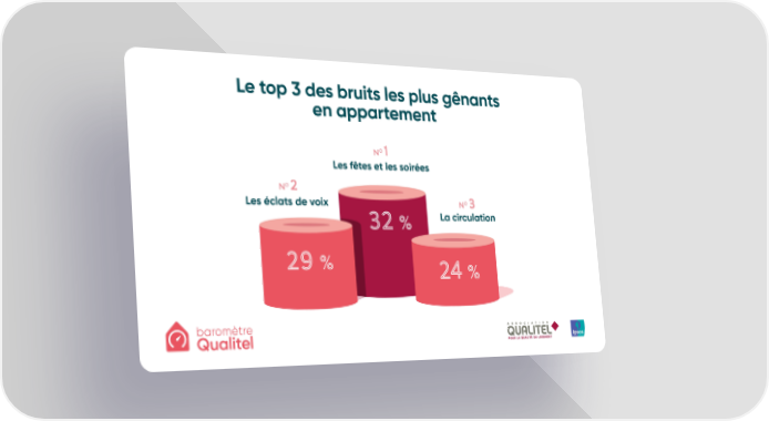 Le top 3 des bruits les plus gênants en appartement O N 1 Les fêtes et les soirées O N 2 Les éclats de voix O N 3 32 % La circulation 29 % 24 %