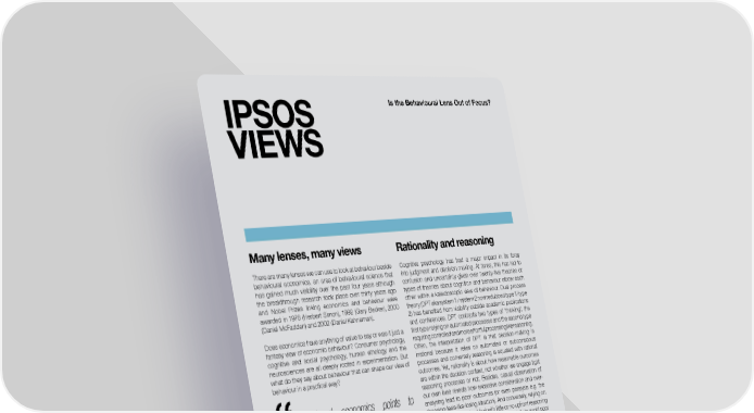 IPSOS Is the Behavioural Lens Out of Focus? VIEWS Many lenses, many views Rationality and reasoning There are many lenses we can use to look at behaviour beside Cognitive psychology has had a major impact in its foray behavioural economics, an area of behavioural science that into judgment and decision making. At times, this has led to has gained much visibility over the past four years although confusion and uncertainty given over twenty-five theories or the breakthrough research took place over thirty years ago types of theories about cognition and behaviour elbow each and Nobel Prizes linking economics and behaviour were other within a kaleidoscopic view of behaviour. Dual process awarded in 1978 (Herbert Simon), 1992 (Gary Becker), 2000 theory (DPT aka system 1 / system 2 now redubbed type 1/ type (Daniel McFadden) and 2002 (Daniel Kahneman). 2) has benefited from visibility outside academic publications and conferences. DPT contrasts two types of ‘thinking’: the Does economics have anything of value to say or was it just a first type relying on automated processes and the second type fantasy view of economic behaviour? Consumer psychology, requiring controlled and more effortful processing like reasoning. cognitive and social psychology, human ethology and the Often, the interpretation of DPT is that decision-making is neurosciences are all deeply rooted in experimentation. But irrational because it relies on automated or subconscious what do they say about behaviour that can shape our view of processes and conversely reasoning is equated with rational behaviour in a practical way? outcomes. Yet, rationality is about how reasonable outcomes are within the decision context, not whether we engage tight reasoning processes or not. Besides, casual observation of Behavioural economics points to our own lives reveals how excessive consideration and over- analysing lead to poor outcomes (or even paralysis e.g. the “limitations in our willingness and ability choosing-feels-like-losing situation). And conversely, relying on past experiences and gut-feel with little or no upfront reasoning to behave as maximisers and shows can lead to sensible, rational outcome (especially to avoid poor decision making does not always reflect decisions). As Kahneman put it in 2003 in a summary of his “ work for the American Economic Review: “attention and effort consistent and stable preferences... by themselves do not purchase rationality or guarantee good decisions. In some instances, too much cognitive effort actually lowers the quality of performance. There are other situations in which skilled decision makers do better when they trust their intuition than when they are engaged in detailed analysis”. Economics was first under the spotlight. Arguably, it was a sitting duck because it imagined a world where everyone Often lost in translation here is that the “coherence-rationality” forms “consistent and stable” preferences and behaves as a espoused by economics is not the same as the “reasoning- perfect ‘maximiser’ all the time (always choose best) in a world rationality” of interest to psychologists. More from behavioural where all choices are only about self-interest. science has been lost in translation, for example: Behavioural economics points to limitations in our willingness and ability to behave as maximisers and shows decision making does not always reflect consistent and stable preferences (especially in situations of risk or uncertainty) as evidenced for example by loss aversion or framing effects. 2