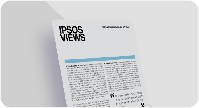 IPSOS Is the Behavioural Lens Out of Focus? VIEWS 3. Private labels or store brands are a prime example of 4. Digital technology creates opportunities to encounter SAM principles at work in consumers’ behaviour. In many the brand in ways that attract attention, have emotional countries, private labels have been re-designed to deliver resonance, build brand accessibility or make shopping a consumer experience on par with that of manufacturers’ really easy. The Pepsi Max augmented reality campaign in brands. The more consistent product quality is across bus shelters in London gave consumers “an unbelievable private labels lines in a store, the more efficient the choice moment in their day” to help them notice and connect with for private labels becomes (including trial). Consistent visual the brand. At the shelf, IBM augmented reality shopping cues across shelves minimise attentional effort. Private app creates an easy and informative experience to find out labels matching their design with a leading brand also more about brands or quickly scan them for content without make it easy for consumers to compare: visual familiarity reading all back labels. Apart from the critical point that the minimises consumers’ loss aversion or status quo effect shelf is, any entry point (outdoor advertising, magazine as they consider switching. In a test for a grocery chain, page, ordinary objects or popular shopper locations) can be we found that more consistent visual cues of a particular used to create an experience that is educational, informative type across categories (e.g. tinned tomatoes, cheese, salty or entertaining and most importantly immersive. snacks, frozen dessert, etc.) led to stronger appeal because all products look like they belong to the same brand. the cheaper cost structure of private Is it surprising that the share of private labels is as high as 6 labels for retailers makes it easier 45% of grocery sales in Europe as reported by Nielsen when “ “ the business model fits so neatly around the key forces that for consumers to behave like near shape consumer behaviour. In our 2014 Ipsos global trends survey of 21 developed and emerging countries, 48% of maximisers: consumers say private label/store brands and manufacturer brands don’t differ in quality. Germany tops the list with 64% followed by the US and UK with 58% and 56%. Conversely Germany is the country where people least feel overwhelmed Digital technology can also totally disrupt the journey on the by the choices they have as a consumer (i.e. more would be consumer mental wheel by impacting attention, valuation more of the same). and experience through a radically different experience. The L’Oreal Genius Make-up app makes it easy to search, Finally, the cheaper cost structure of private labels for experience and remember looks, order for home delivery, retailers makes it easier for consumers to behave like near reduces the risk of negative emotion (eliminates uncertainty maximisers: consumers form on-par quality expectations about looks) and creates exclusive attention to the brand. and they are given lower prices and they process choice Other brands like Shiseido, De Beers or Ikea have seized on with minimum cognitive cost and they experience minimum the same idea. negative emotion as they form value and buy. Private labels can effectively tick all three SAM boxes. % saying private label brands and manufactured brands “don’t differ in quality” Germany 64% US 58% UK 56% Source: Ipsos Global Trends 2014 11