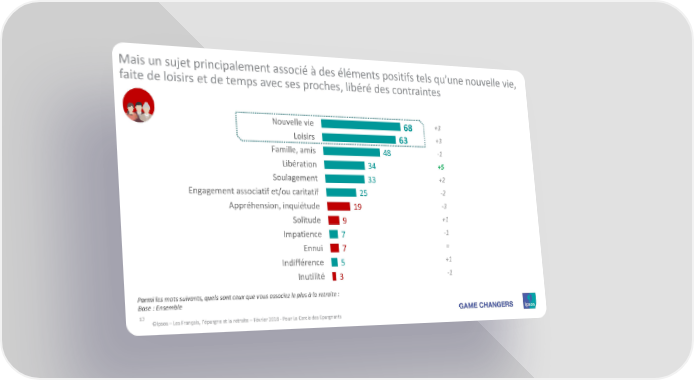 Mais un sujet principalement associé à des éléments positifs tels qu’une nouvelle vie, faite de loisirs et de temps avec ses proches, libéré des contraintes Nouvelle vie 68 +3 Loisirs 63 +3 Famille, amis 48 -1 Libération 34 +5 Soulagement 33 +2 Engagement associatif et/ou caritatif 25 -2 Appréhension, inquiétude 19 -3 Solitude 9 +1 Impatience 7 -1 Ennui 7 = Indifférence 5 +1 Inutilité 3 -1 Parmi les mots suivants, quels sont ceux que vous associez le plus à la retraite : Base : Ensemble 17 ©Ipsos –Les Français, l’épargne et la retraite – Février 2018 - Pour Le Cercle des Epargnants