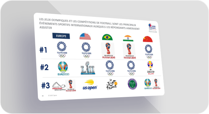LES JEUX OLYMPIQUES ET LES COMPÉTITIONS DE FOOTBALL SONT LES PRINCIPAUX ÉVÉNEMENTS SPORTIFS INTERNATIONAUX AUXQUELS LES RÉPONDANTS AIMERAIENT ASSISTER EUROPE #1 #2 #3 46 © 2017 Ipsos