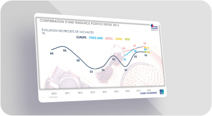 CONFIRMATION D’UNE TENDANCE POSITIVE DEPUIS 2016 ÉVOLUTION DES PROJETS DE VACANCES (%) EUROPE ÉTATS-UNIS BRÉSIL CHINE INDE 66 68 64 6867 66 66 64 64 63 64 60 61 61 53 54 54 2010 2011 2012 2013 2014 2015 2016 2017 2018 7 © 2017 Ipsos