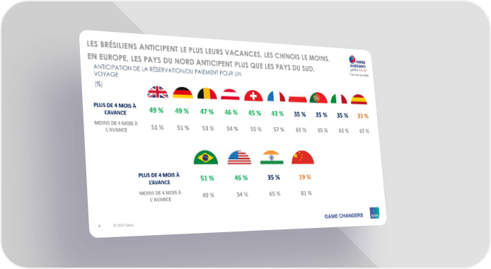 LES BRÉSILIENS ANTICIPENT LE PLUS LEURS VACANCES, LES CHINOIS LE MOINS. EN EUROPE, LES PAYS DU NORD ANTICIPENT PLUS QUE LES PAYS DU SUD. ANTICIPATION DE LA RÉSERVATION/DU PAIEMENT POUR UN VOYAGE (%) PLUS DE 4 MOIS À 49% 49% 47% 46% 45% 43% 35% 35% 35% 33% L’AVANCE MOINS DE 4MOIS À 51% 51% 53% 54% 55% 57% 65% 65% 65% 67% L’AVANCE PLUS DE 4 MOIS À 51% 46% 35% 19% L’AVANCE MOINS DE 4MOIS À 49% 54% 65% 81% L’AVANCE 9 © 2017 Ipsos